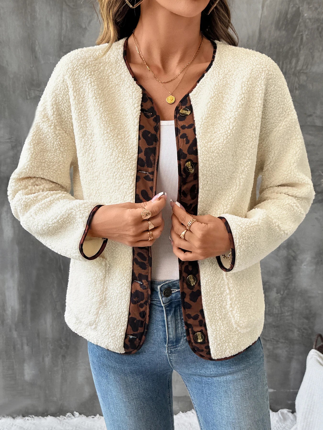 Unleash your wild side with the Celestine Leopard Cardigan. This isn't just a coat; it's your new armor, blending plush comfort with fierce leopard print details designed to make every day unforgettable.