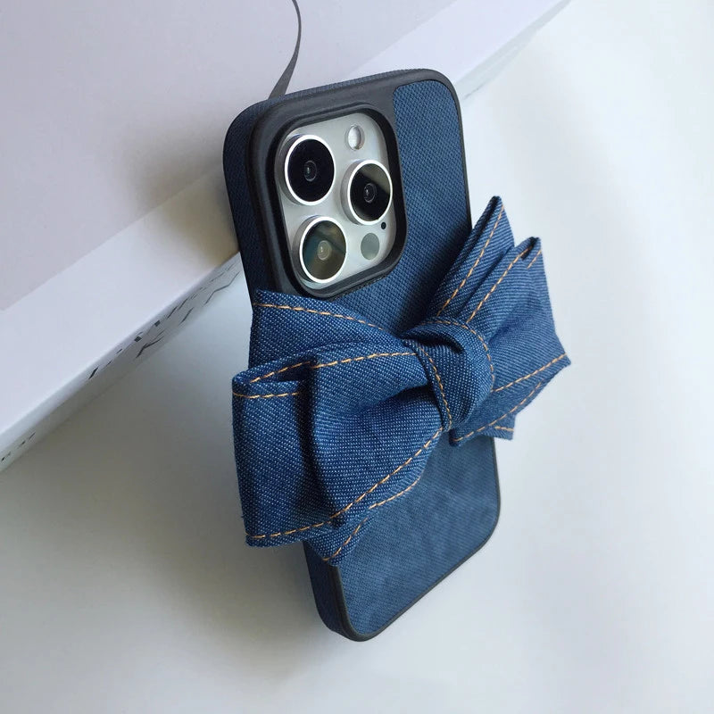 A stylish blend of fashion and protection, this handmade denim case gives your iPhone a trendy, unique touch. Designed with a chic bowknot detail, it combines durable jeans fabric with reliable coverage.