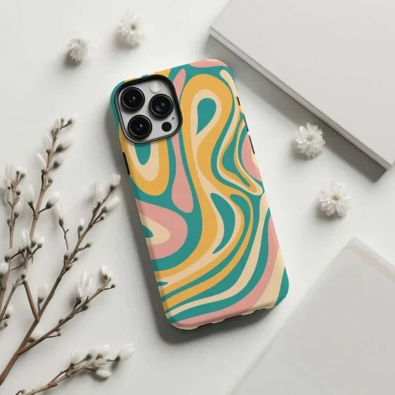 Stand out with the Groovy Wave Case, a retro-inspired blend of bold colors and vibrant wave patterns. Designed for iPhone models, this case combines durable acrylic and flexible TPU for unmatched protection and style.