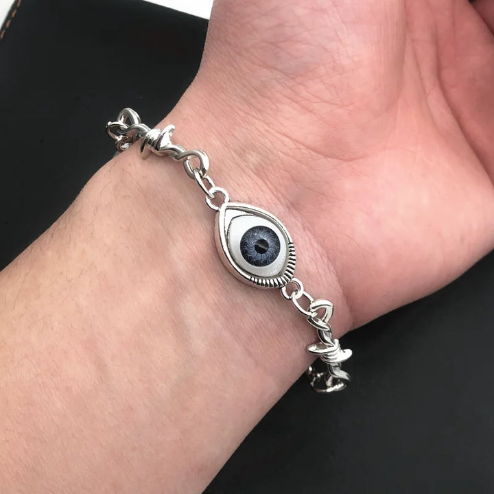 The Phantom Eye Chain features a realistic eye charm set in a vintage metal chain—part protection, part punk. It’s a statement piece made for the fearless.
